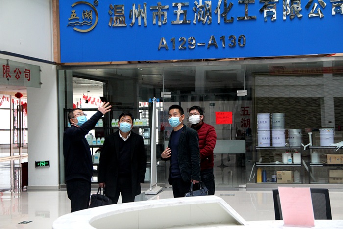 王炯一行分別在金海化學(xué)品市場和牛山商務(wù)大廈疫情防控卡點(diǎn),詳細(xì)了解了疫情防控排查、防控措施落實(shí)、黨員先鋒崗值班值守等情況,鼓勵(lì)一線工作人員要堅(jiān)守疫情防控第一線,有力有效防止疫情輸入和擴(kuò)散;同時(shí),要做好自我防護(hù),確保自身安全。在金?;瘜W(xué)品市場,王炯認(rèn)真詢問“六個(gè)一”措施落實(shí)情況,針對(duì)市場防疫管控、返崗復(fù)工等難點(diǎn)堵點(diǎn)提出建設(shè)性的指導(dǎo)意見。