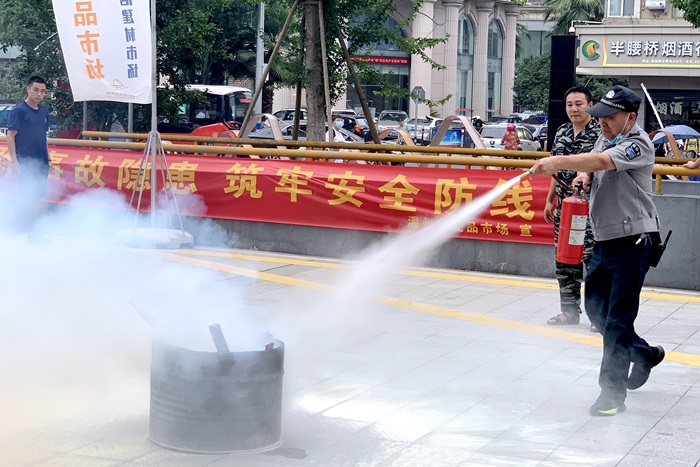 當(dāng)天,物業(yè)工作人員組織了市場經(jīng)營戶集中參加消防安全培訓(xùn),傳授滅火器的原理、使用方法,講解日常工作和生活中消防防范及發(fā)生火災(zāi)時如何安全逃生等安全知識。通過模擬市場著火演練,組織物業(yè)指揮組、滅火組、疏散組、救護組等有條不紊引導(dǎo)市場內(nèi)人員疏散逃生,并將受傷人員緊急撤離至安全地點,實施心肺復(fù)蘇等待救援。