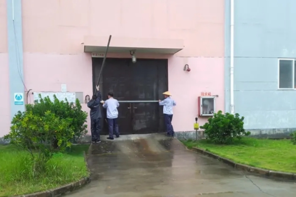 一是科學(xué)部署,精準(zhǔn)防范。本著“早部署、早安心”的原則,成立抗臺搶險指揮部,及早謀劃抗臺檢查、停庫安排等措施,提前做好防范。指導(dǎo)值班人員連夜組織專職消防隊(duì)員,對倉儲區(qū)庫房門窗進(jìn)行關(guān)閉、加固。